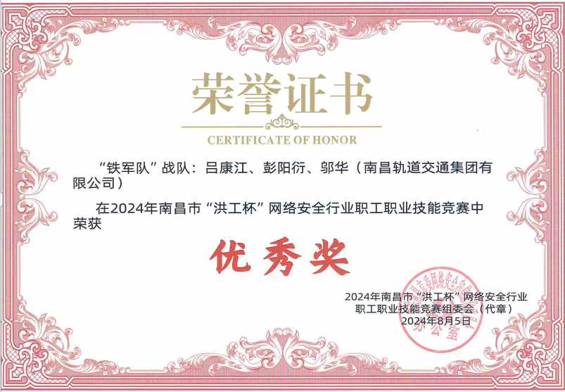 集團(tuán)榮獲南昌市“洪工杯”網(wǎng)絡(luò)安全行業(yè)職工職業(yè)技能競賽優(yōu)秀獎