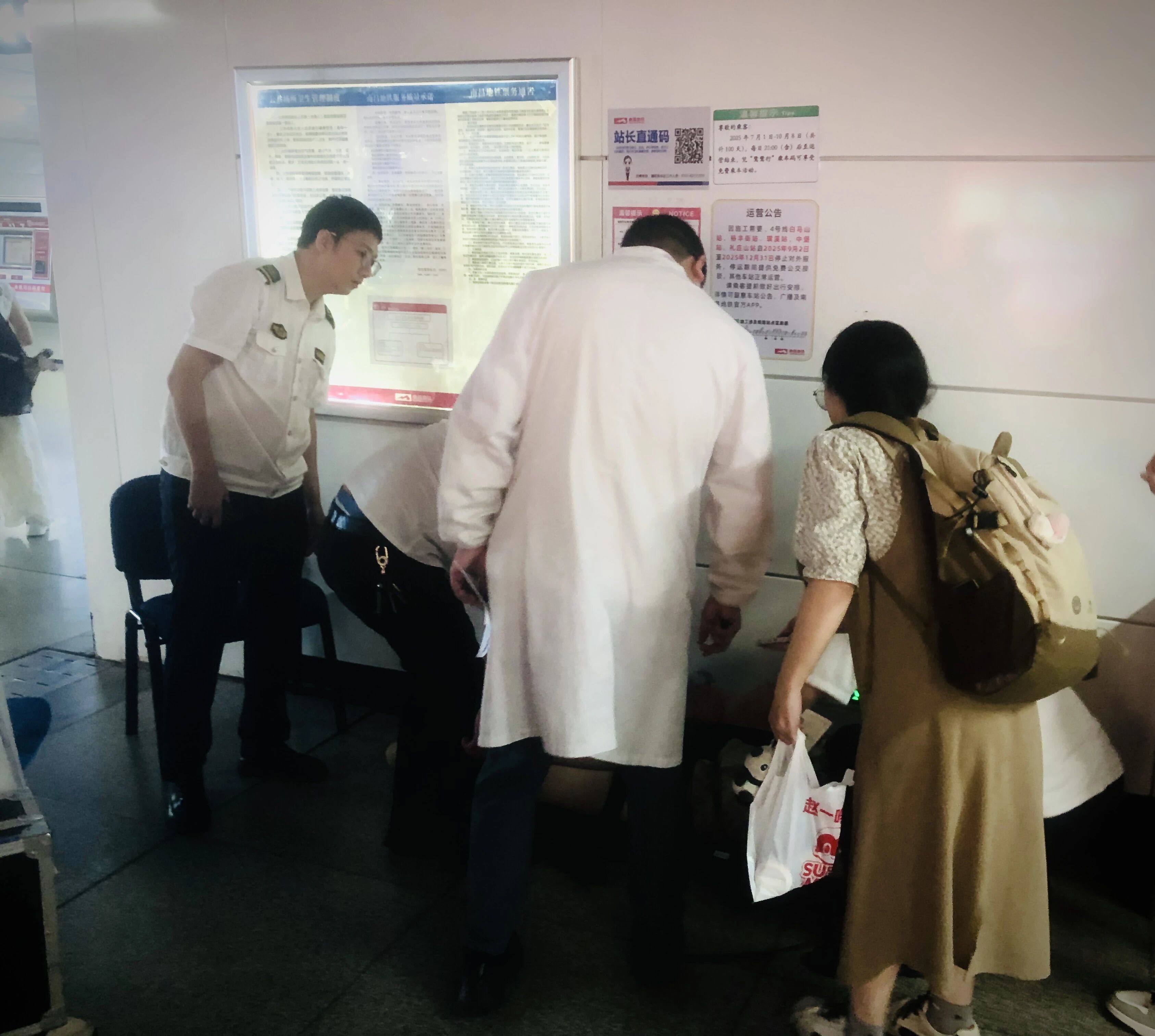 了解到乘客的特殊情況后,站內(nèi)工作人員第一時間通知車控室撥打 120 急救電話,同時為乘客遞上溫水,密切關(guān)注乘客的身體狀態(tài)。急救人員抵達(dá)現(xiàn)場后,工作人員協(xié)助急救人員將乘客送往醫(yī)院接受治療。而那位最初伸出援手的乘客,在確認(rèn)乘客得到妥善救助后,未留下姓名便悄悄離開,只留下溫暖的善意。
