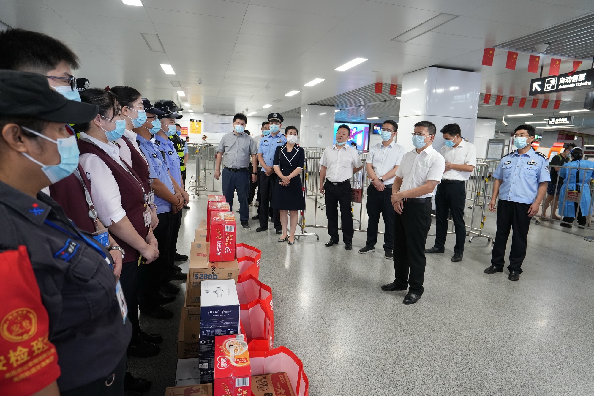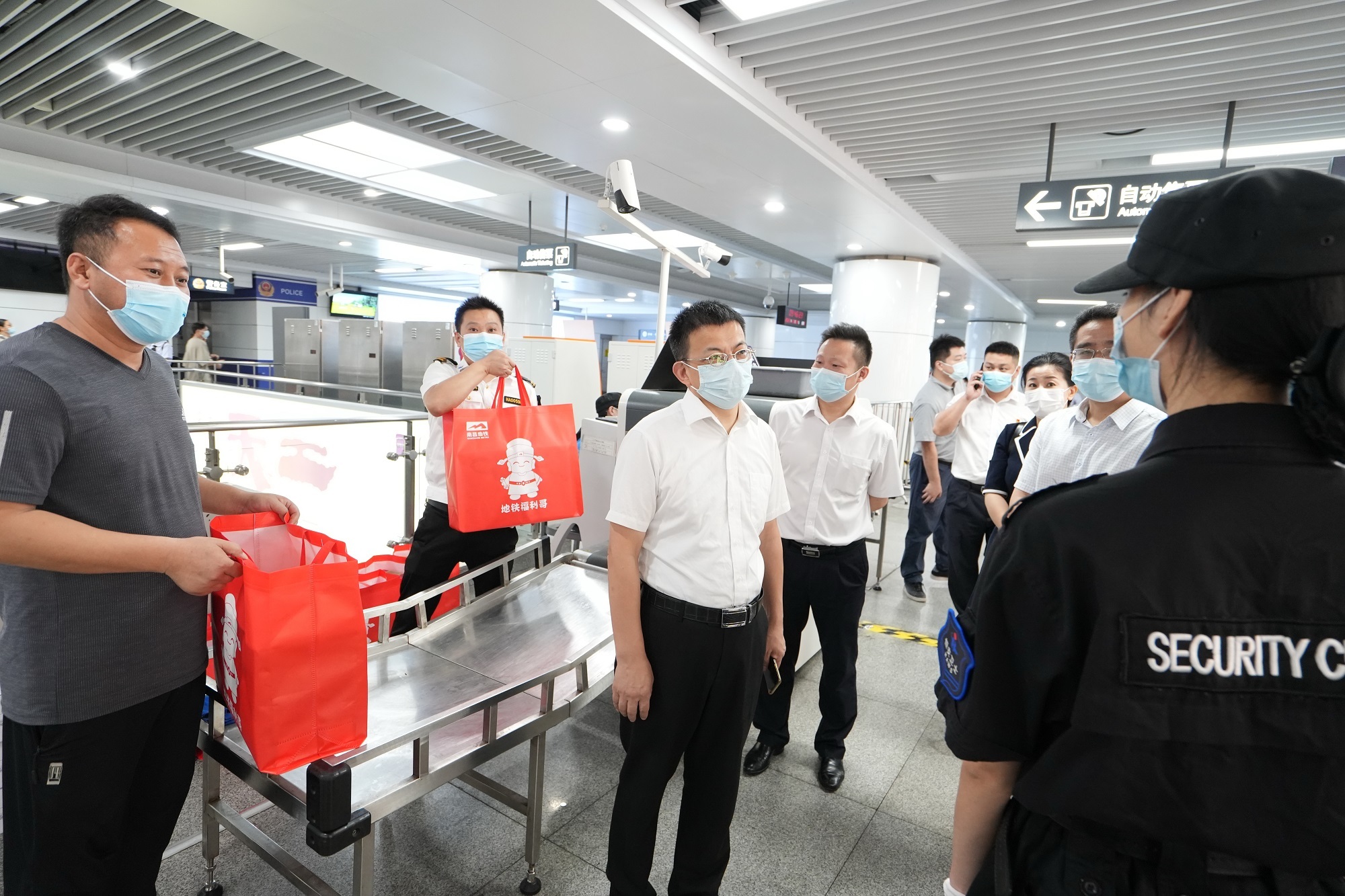 閻志強一行先后來到八一館站、八一廣場站、南昌西站等客流較多的站點,重點檢查了疫情防控、安保安檢、運營服務(wù)、應(yīng)急保障等工作落實情況,親切看望了站務(wù)、執(zhí)法、安檢、公安人員并送去了節(jié)日慰問品。他表示,感謝大家舍小家顧大家,在節(jié)日里放棄與家人親友團聚的機會,堅守崗位、無私奉獻,為全市人民群眾度過一個歡樂、祥和、平安的國慶假期提供了堅強保障。