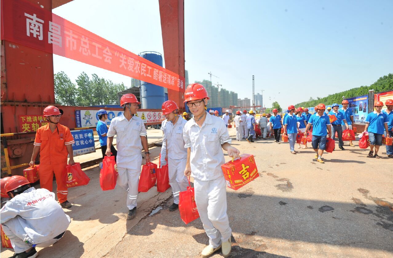 連日來,南昌持續(xù)高溫,驕陽似火炙烤著南昌大地。8月4日,市總工會主席李國根,常務(wù)副主席宋亮生等一行開展了“關(guān)愛農(nóng)民工 酷暑送清涼”為主題的走訪慰問活動。慰問組一行來到南昌軌道交通2號線2標(biāo)嶺北三路站,親切看望奮戰(zhàn)在高溫一線的地鐵建設(shè)者,為他們送去了送來了綠豆、飲料和清涼油等防暑降溫物品。在施工現(xiàn)場,李國根主席向?yàn)槟喜罔F建設(shè)持續(xù)奮戰(zhàn)的廣大施工人員表示了衷心的感謝,希望他們在南昌全力以赴“搶占制高點(diǎn)、聚焦增長極、提升首位度、共筑‘四強(qiáng)’夢”的偉大征程中揮灑汗水,貢獻(xiàn)力量;同時也希望各項(xiàng)目單位做好農(nóng)民工和施工人員的安全生產(chǎn),防暑降溫工作。